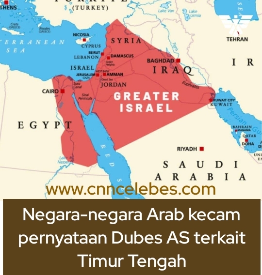 Pernyataan tersebut memicu reaksi keras karena wilayah yang disebutkan mencakup sejumlah negara di Timur Tengah, seperti Yordania, Lebanon, Suriah, sebagian wilayah Mesir, Irak, hingga Arab Saudi.