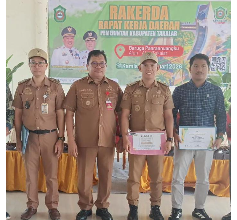Penghargaan atas capaian tersebut diserahkan langsung oleh Bupati Takalar, Mohammad Firdaus Daeng Manye, kepada Kepala Desa Banggae, Faizal, S.Pd.I. Penyerahan piagam dilakukan dalam agenda Rapat Kerja Daerah (Rakerda) Pemerintah Kabupaten Takalar yang berlangsung di Alun-Alun Baruga Panrannuangku, Kamis (12/02/2026), dan dihadiri para camat, kepala desa, serta kepala dusun se-Kabupaten Takalar.