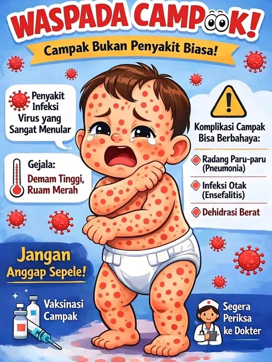 “Kemudian ditetapkanlah tujuh daerah KLB campak, meski sebenarnya status KLB ini ditetapkan kabupaten/kota masing-masing, tapi kasusnya telah menyebar secara nasional,” ujar Yusri, seperti dilansir dari ANTARA, Minggu (12/4/2026).